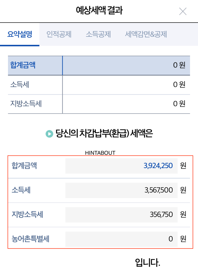 홈택스 연말정산 자동계산기를 이용하면, 근무처 급여정보와 간소화 자료를 모두 가져와서 정확하게 예상 금액을 조회할 수 있습니다.