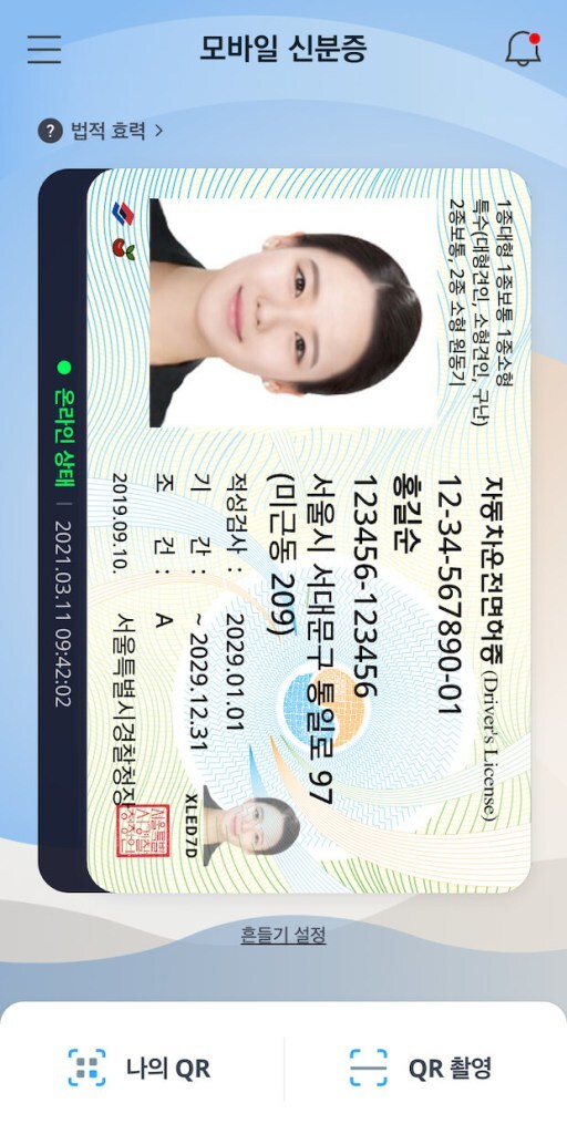 첫 번째 모바일 신분증은 운전면허증인데요, 실물 운전면허증과 동일한 효력을 가진다고 합니다.